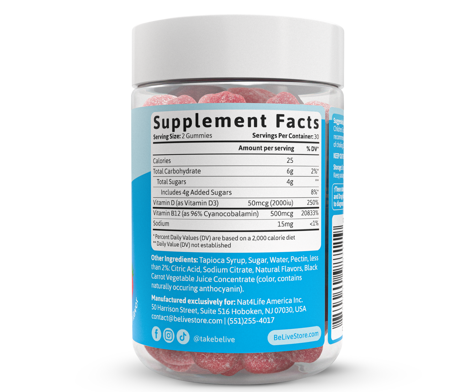 - 500 mcg of Vitamin B12, 50 mcg of Vitamin D3